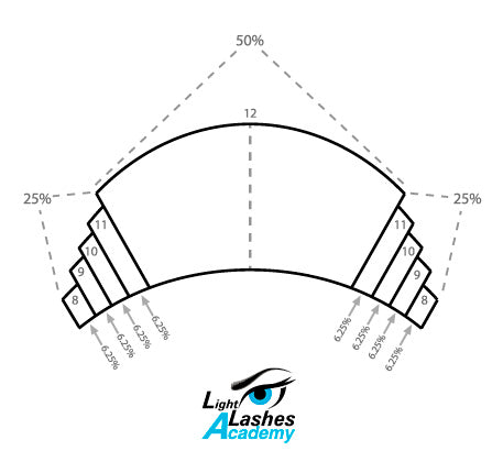 25% is divided into 4 different sizes (8,9,10 and 11 mm) so it becomes 6.25% for each length.