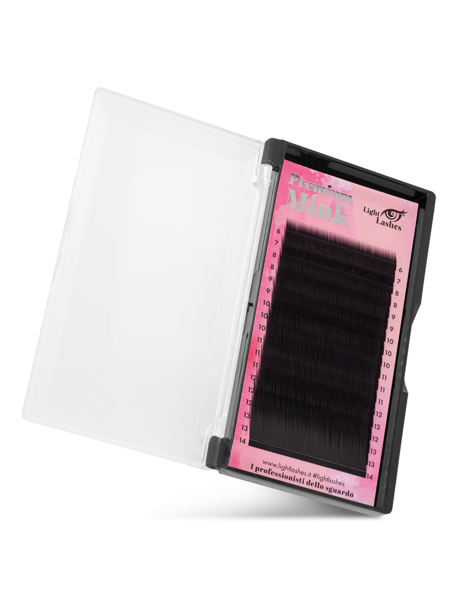 Discover the Premium Mink collection by Light Lashes® , created to offer lash artists the perfect balance of intensity, lightness, and naturalness. An ultra-fine and sophisticated fiber, with an elegant finish that enhances every application. For flawless extensions and even more practical application thanks to the FOILBACK strip, which leaves no residue on the lash pad.