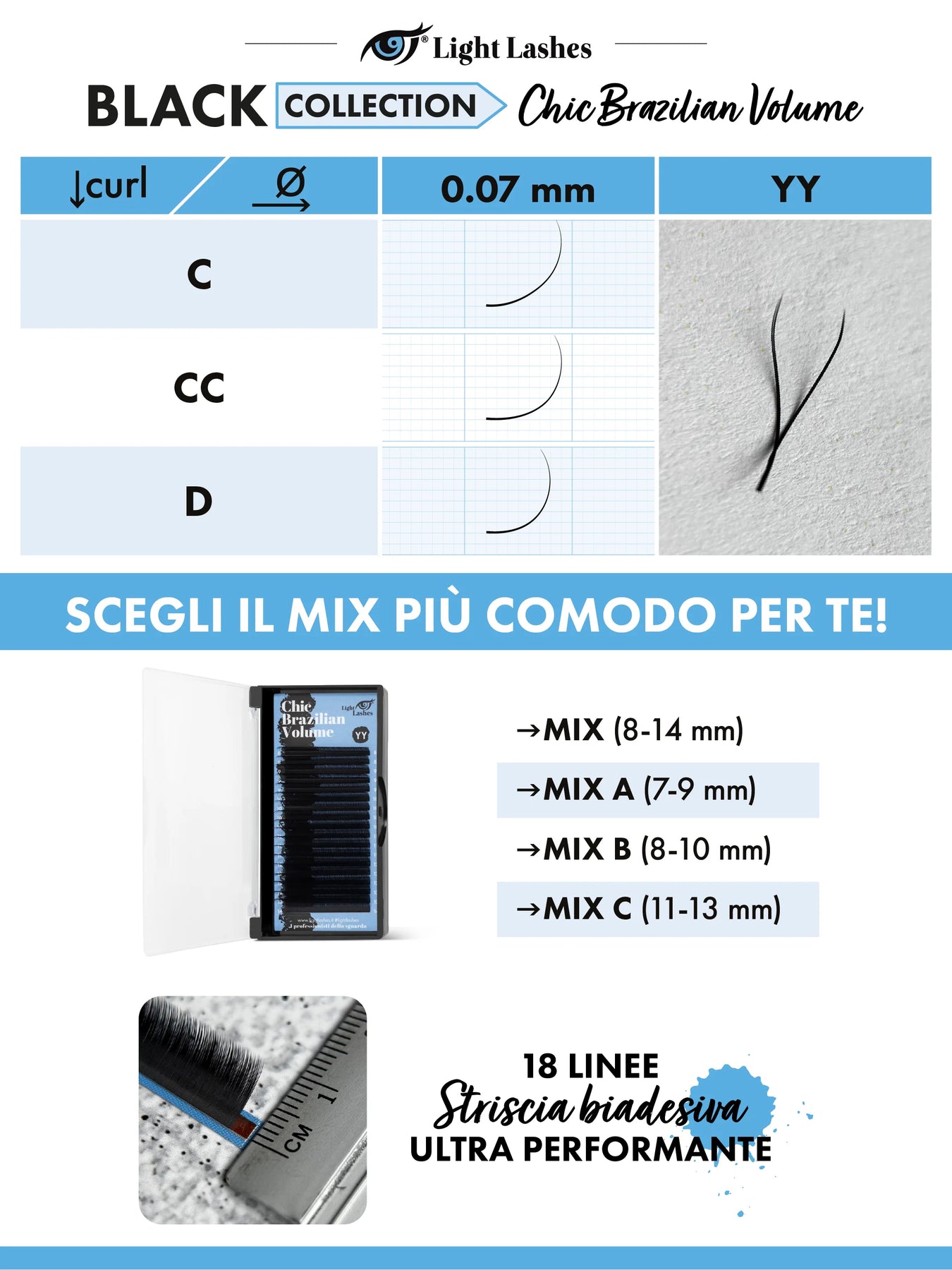 Light Lashes®️ Black Collection presenta le extension ciglia volume Brazilian per chi ama un volume veloce da creare! Ideali per ottenere uno sguardo decisamente d’impatto e con un effetto “selvaggio”. Conosciute al mondo delle lashmaker per la particolare forma a Ypsilon, o le ami o le odi, ma sappiamo che tutti adorano le novità!