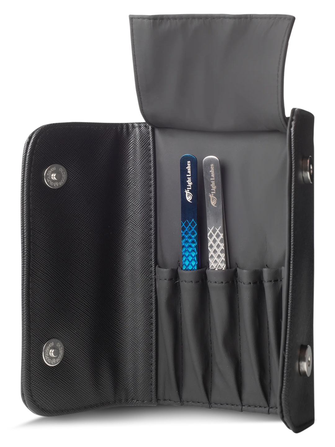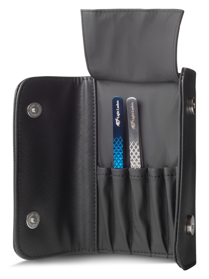 Il porta pinzette firmato Light Lashes® è l’accessorio indispensabile per ogni lash artist! Elegante, compatto e pratico, ti permette di portare le pinzette ovunque in totale sicurezza. In morbida ecopelle, non graffia la superficie delle pinzette e protegge le punte da urti, mantenendole sempre affilate ed efficienti.
